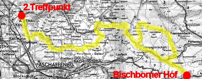 1. Treffpunkt am Stall zum 2. Treff in die Nähe von Alzenau. Zunächst