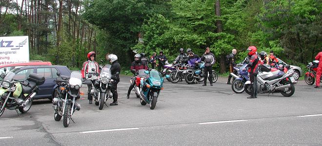 waren wir 18 Biker, später kamen noch zwei wasserscheue Nachzügler,