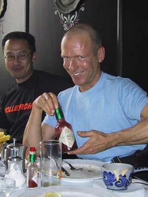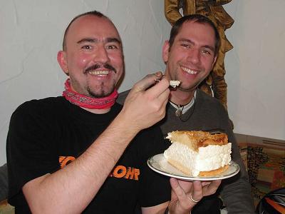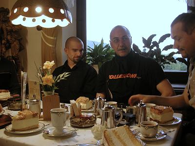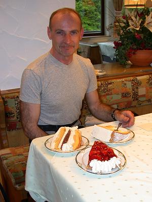 | Michael, heute auch das erste Mal dabei, vor einer Kuchenration im