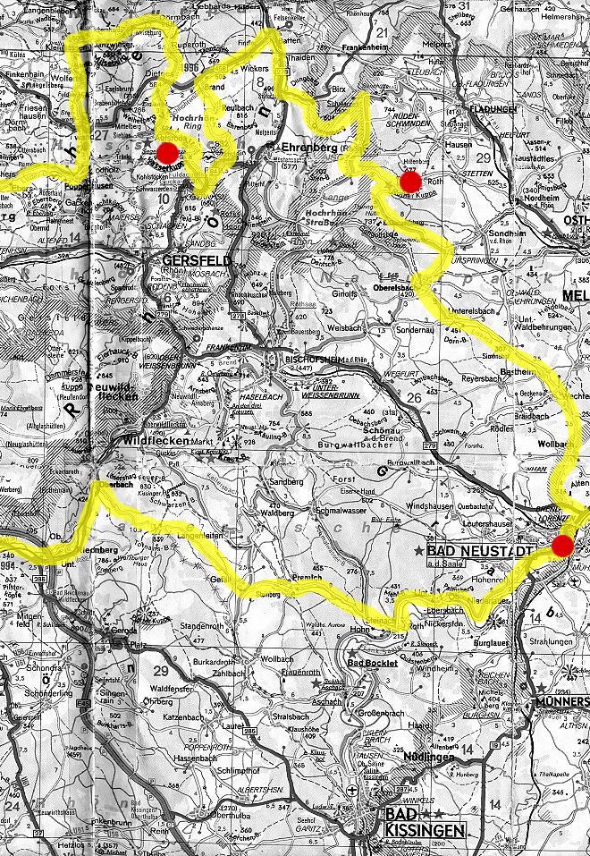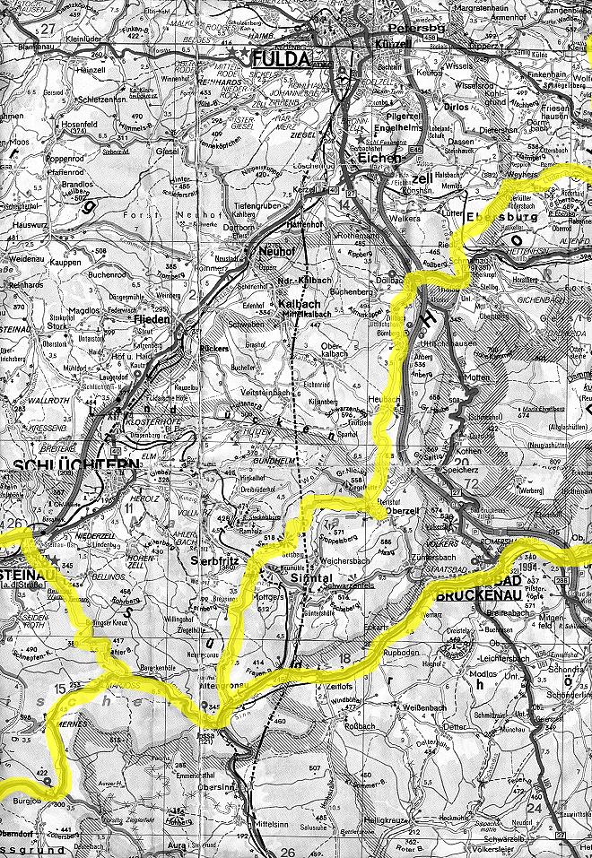 Frankfurt heraus und bei Bad Orb abgefahren. Das ist auf der Karte unten leider