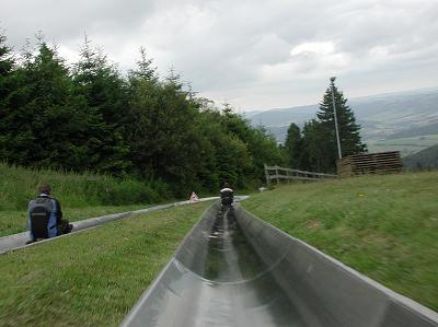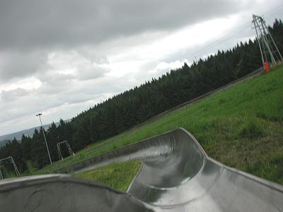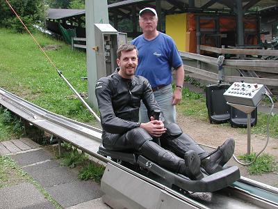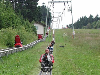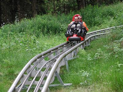 ordentliches Gedränge am Kassenhäuschen der Sommerrodelbahn.