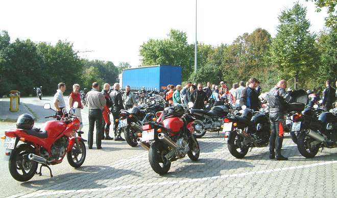 zusammengekommen um eine Tour zu fahren. Kein Wunder bei diesem Wetter. Wieder