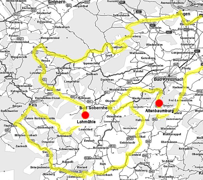 Richtung Bad Kreuznach. Dort nahmen wir die B48 nach Altenbamberg. Auf der