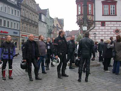 | Vor einem Bratwurststand in Coburg. Der räucherte den ganzen