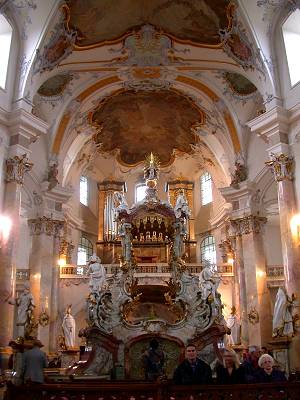 Der Gnadenaltar mit den vierzehn Nothelfern erhebt sich in der