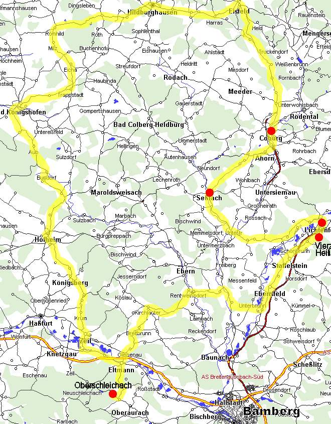 | Die Veste Coburg liegt 147m über der Stadt und die Silhouette