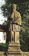 Auf der linken Mauer befindet sich die Statue des hl. Nepomuk, der