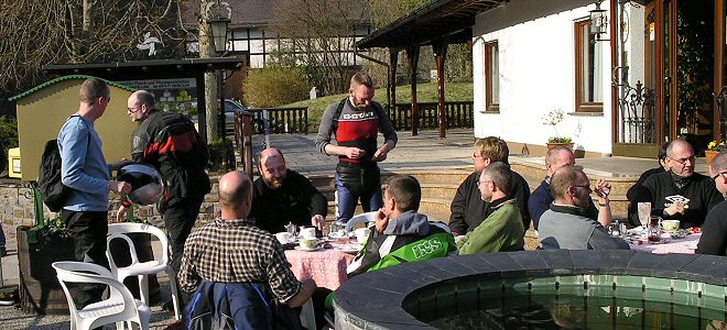 später als geplant trafen wir uns zum Kaffee in der Laukenmühle im