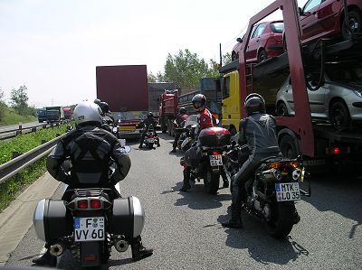 | Wenig später dann ein kleines Verkehrschaos auf der