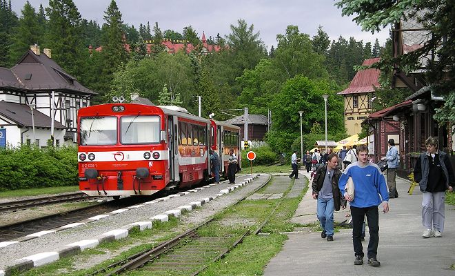 Tatrabahn in Tatranska Lomnica vor der Abfahrt nach Poprad |