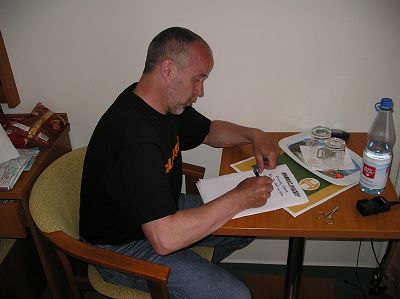 | Hans-Peter bei der Ausarbeitung der Ankündigungen für