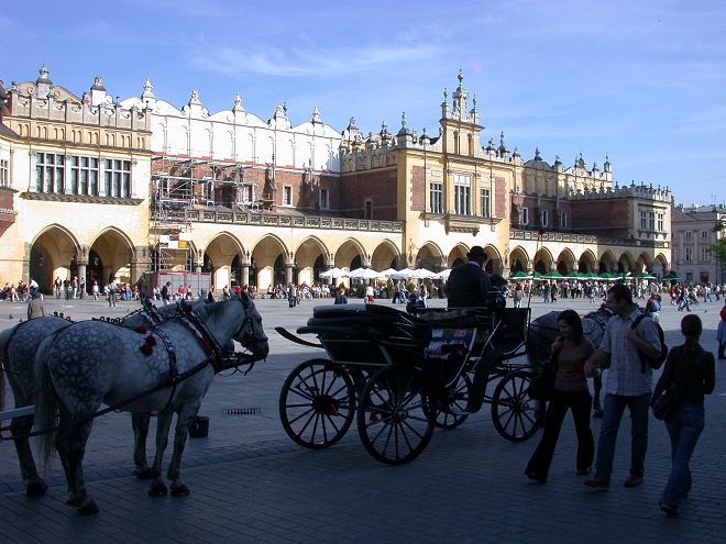 Jacek handelt mit den Pferdekutschern einen guten Preis aus, damit wir