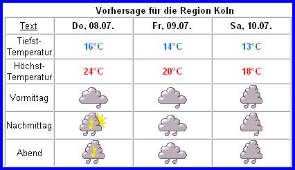 sämliche Wettervorhersagen die man aufrufen kann und sah überall nur