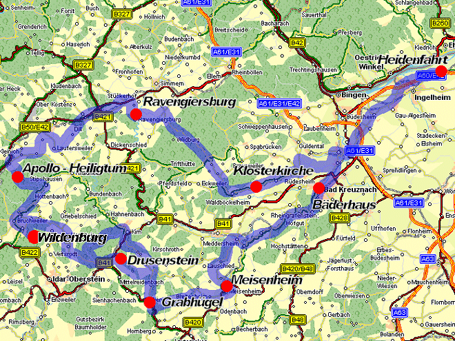 Straßen kreuz und quer durch den Hunsrück und das Nahetal.