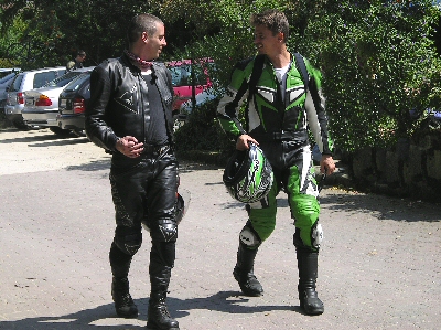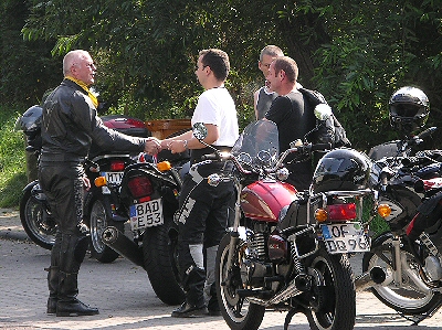 | Horst (links) von den Biberbikern bei der Begrüßung.