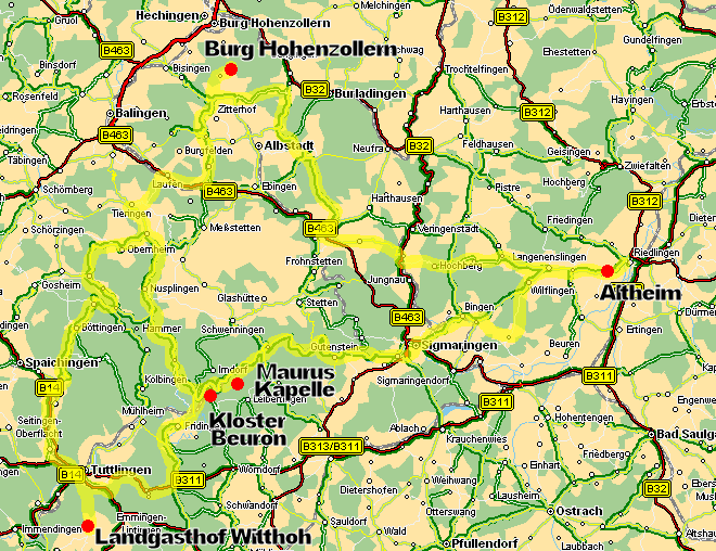 zwischen Friedingen und Siegmaringen liegt das Kloster Beuron. |