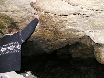 ca. 70m mit einem flachen Kahn in den Berg verfolgen kann. |