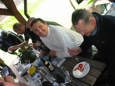 ... und die entspannte Gruppe, beim gemässigten Plausch am