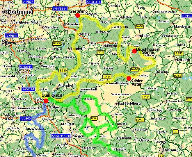 die Tour weiter in Richtung Hochsauerland über Hirschberg, Warstein und