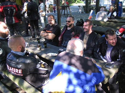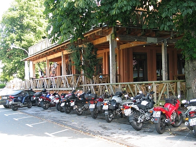 Mönesee. Direkt am See liegt der Biker-Treff Geronimo, wo wir uns auf der