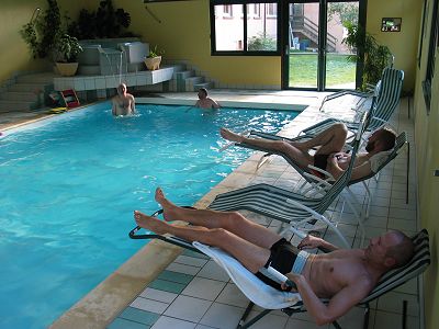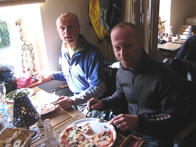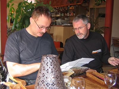 | Jörg und Guido beim Mittagessen in Riquewihr. |