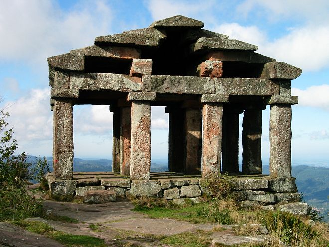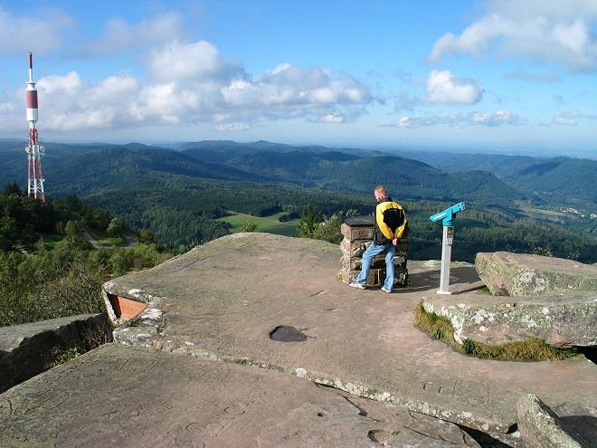 | Der Roche de Dabo ist ein roter Sandsteinfelsen bei dem