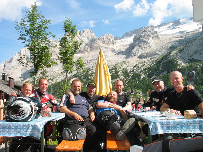 Thorsten, Andi , Andi, Peter, Michael im Hintergrund das Marmolada