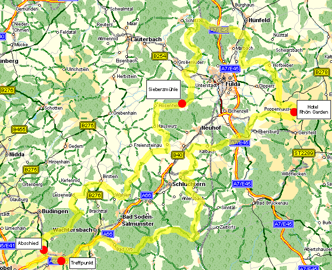 Landrücken, vorbei an der Wasserkuppe, durch die Rhön, in den