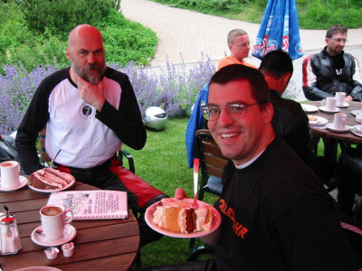 einem Waldcafé mit riesengroßen hausgemachtem Kuchen.