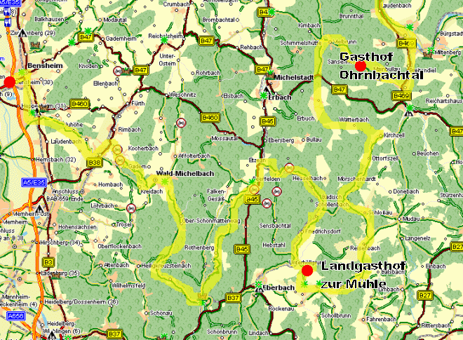 Wald-Michelbach nach Hirschhorn und weiter nach Beerfelden. Eine