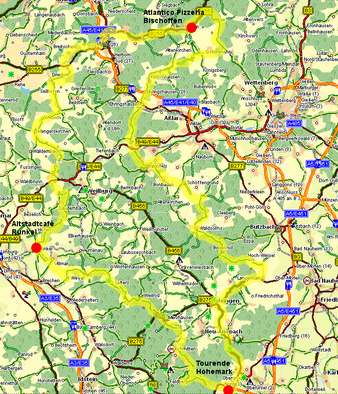 vom Startpunkt der Tankstelle an der A661 zwischen Bad Homburg und Oberursel