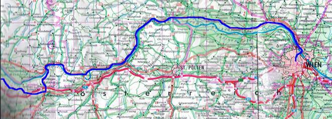 nach Wien am 15. Mai führte an der Donau entlang. Beeindruckend und alles