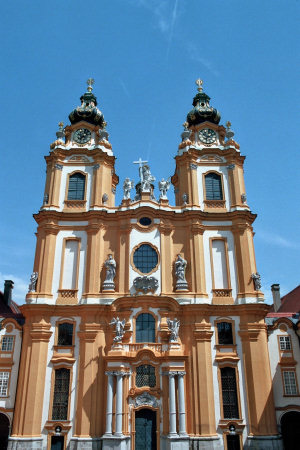 andere als bescheiden: das Benedektinerkloster Stift Melk, hier die Turmfassade