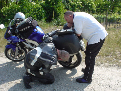 Michael und Thomy beim Blasen... Ob es dem Motorrad gefallen hat?