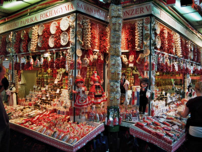 | Ein Klischeestand in der Markthalle: Paprika, Knoblauch und