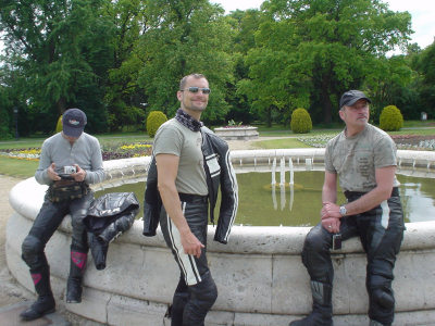 Brunnen vor dem Tore des Eger-Schlosses: Helmut, Matthias und Micha (Grüne