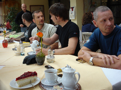Wolfgang und Andi, im Hintergrund Jörg in Gespräch mit