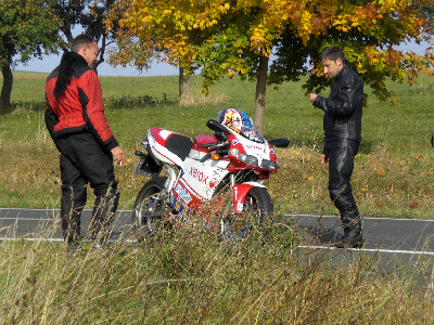 Jan-Uwe und Michael bestaunen Herbys neue Duc im