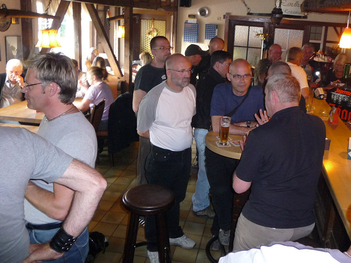 tummelten wir uns alle schon sehr zeitig an der Bar ... Micha spricht mit