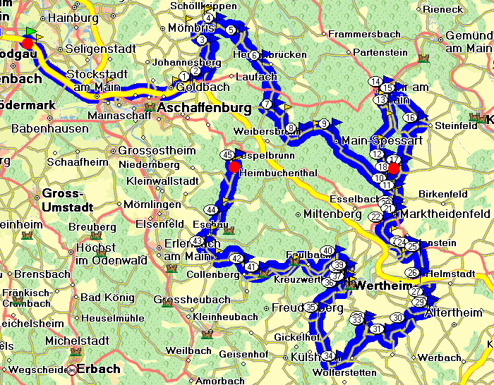 Aschaffenburg. Wir starteten in Richtung Osten. An der Ausfahrt 61 /
