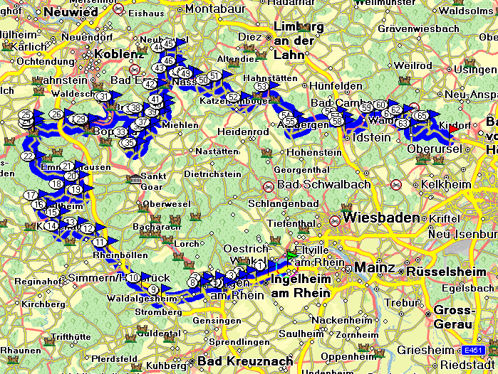über Katzenelnbogen bis Idstein (wer's eilig hatte, konnte dort auf die