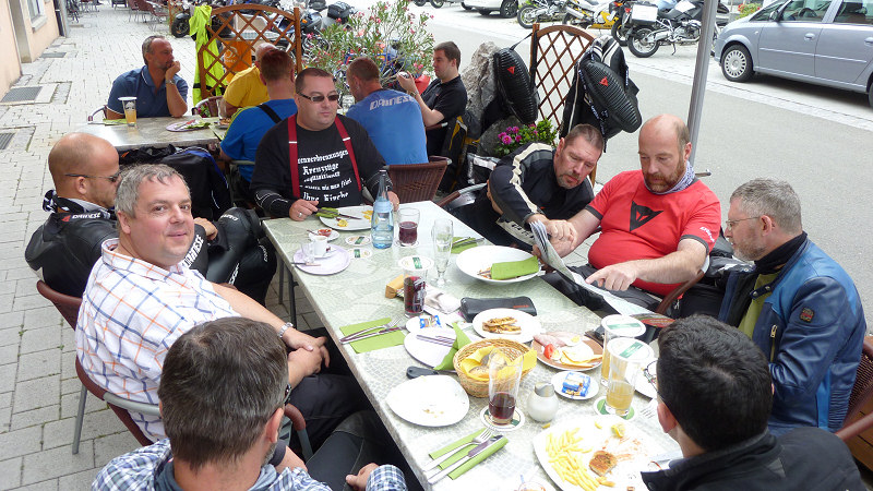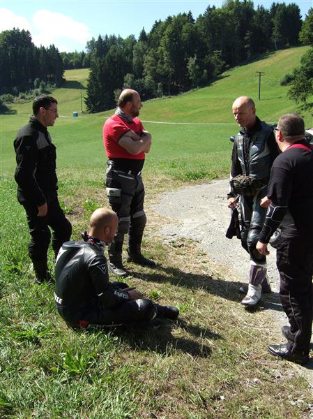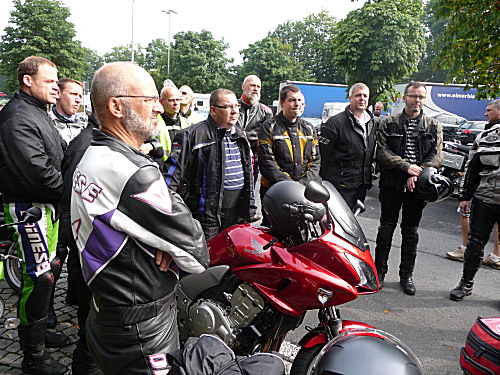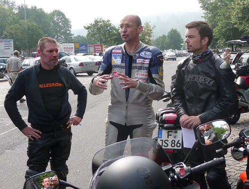 | Tourbesprechung an der Raststätte vor der Abfahrt |