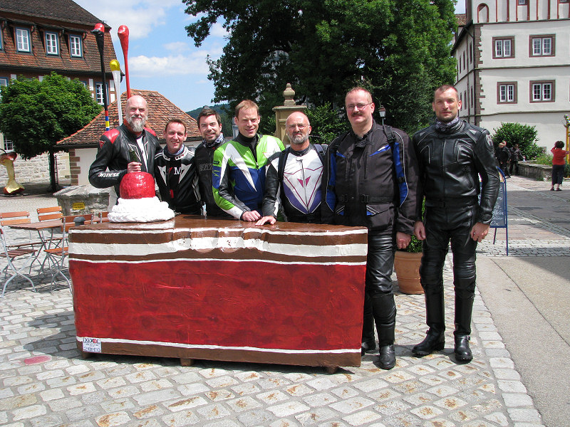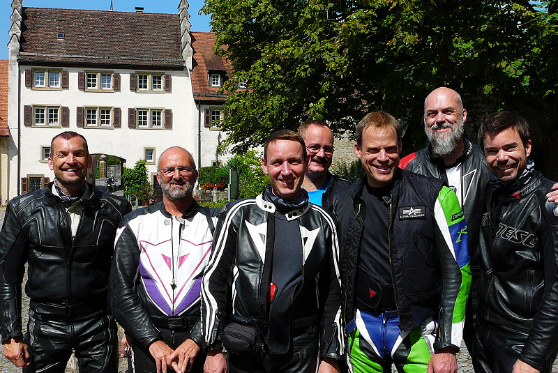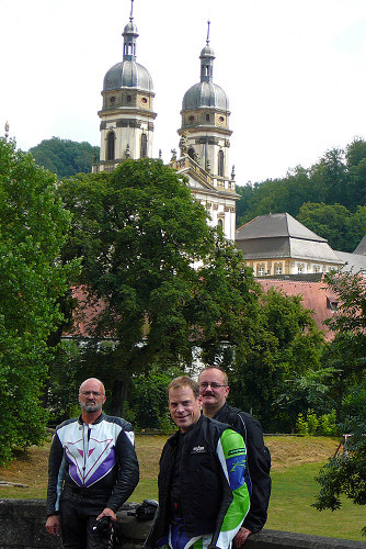 Andy, Peter, Lutz und Jörg im Hof von Kloster Schöntal. Vom Kloster