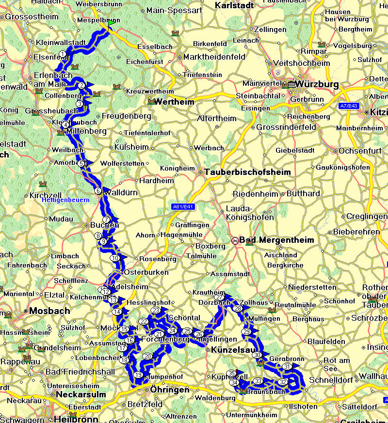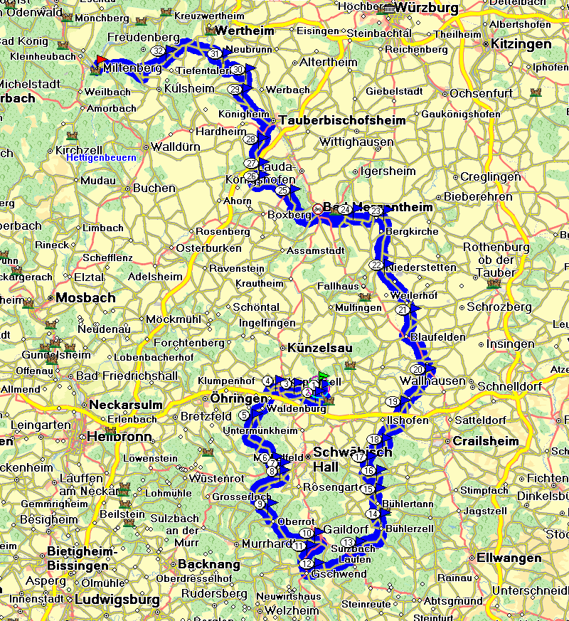 Maintal, weiter über die Höhen des Baulandes in das Jagsttal bis zur