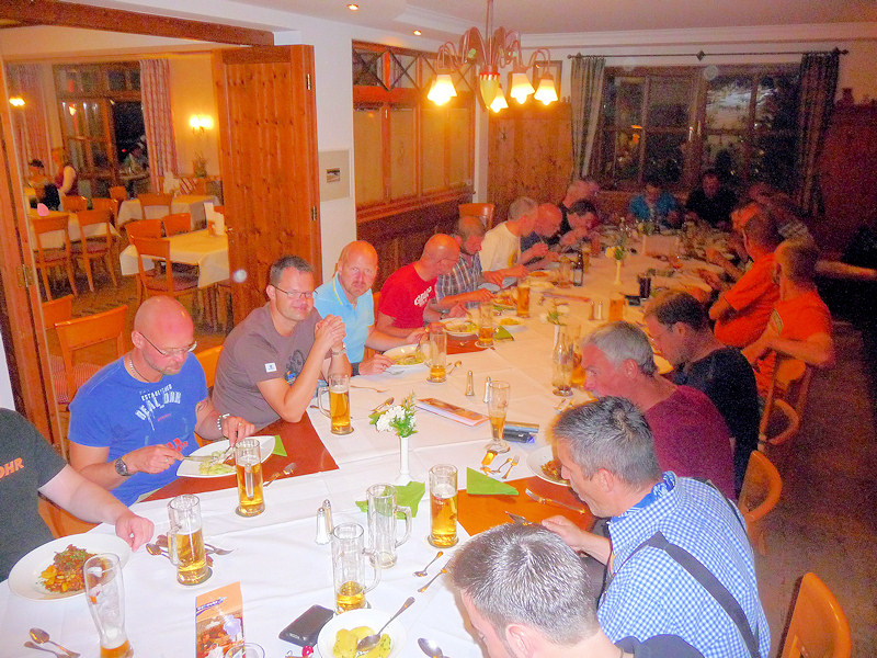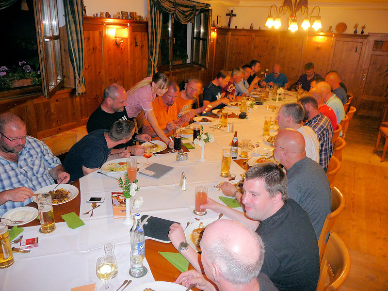 dann zum Abendessen in einem gesonderten Gruppenraum. |