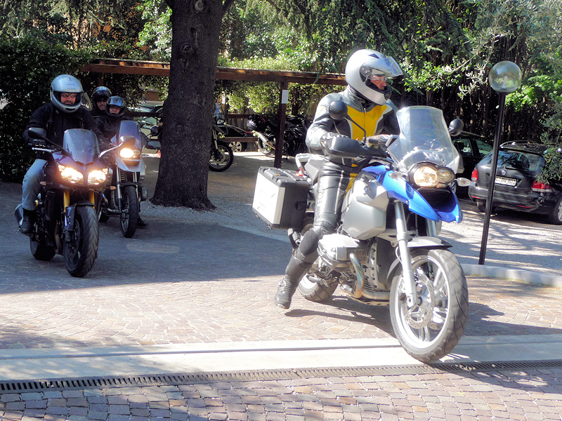 | Abfahrt zur 1. Tour, Peter gefolgt von Jochen und Wolfgang und Hans! |
