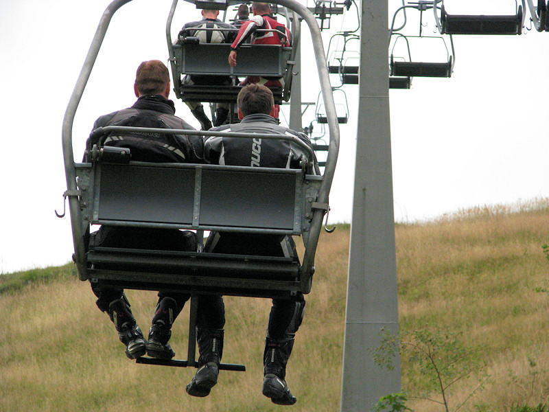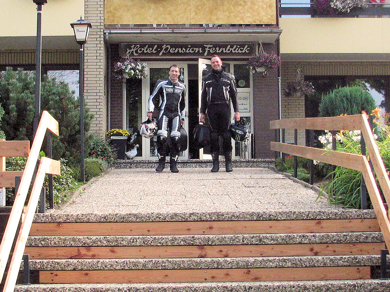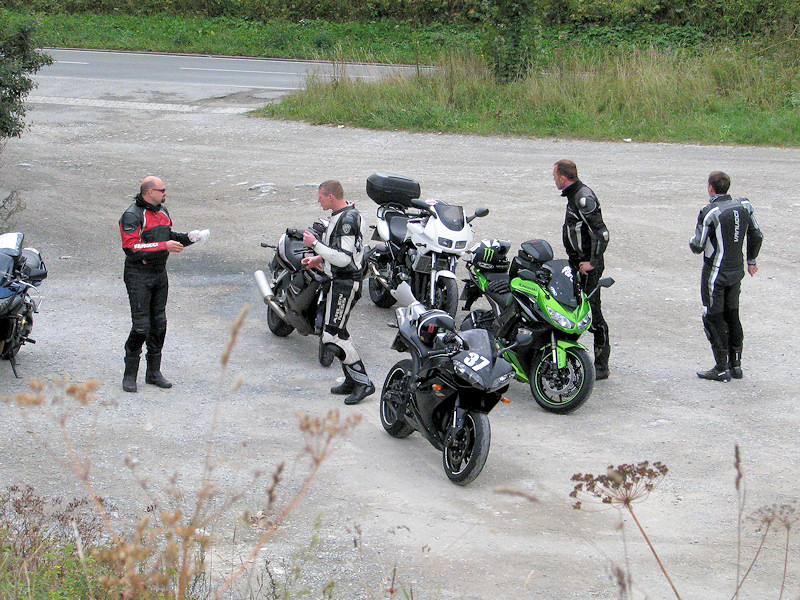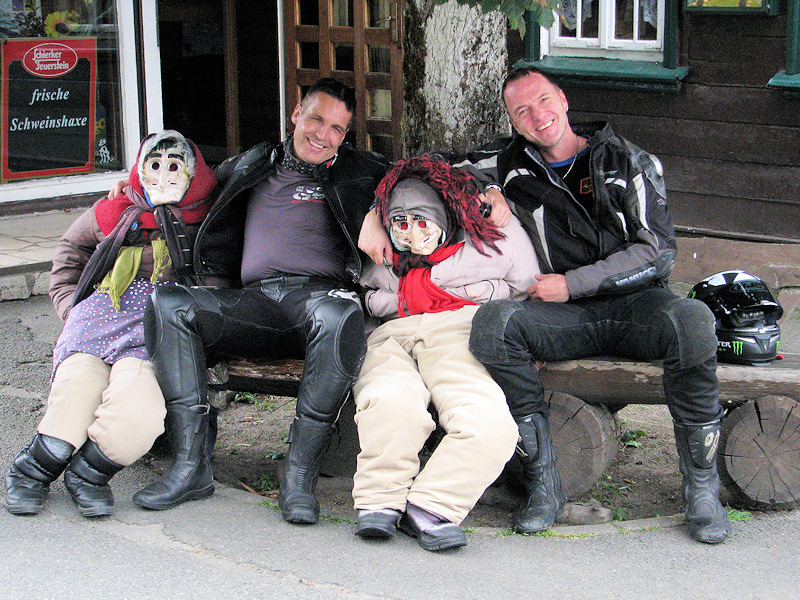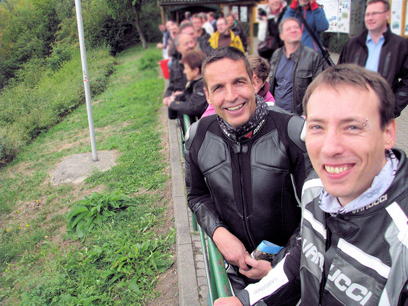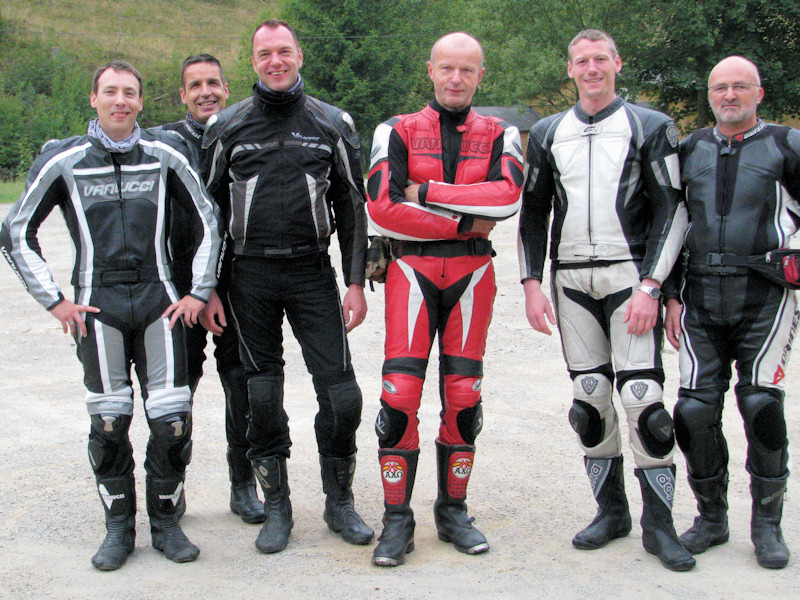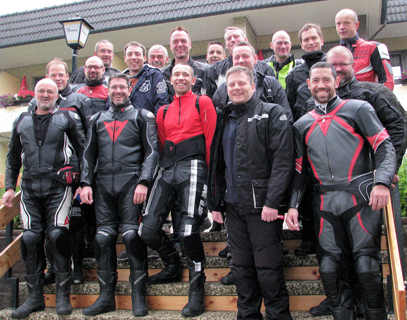 | Markus (vorne, Mitte, rotes Fleecehemd) und Marc (vorne, rechts, Lederkombi) |