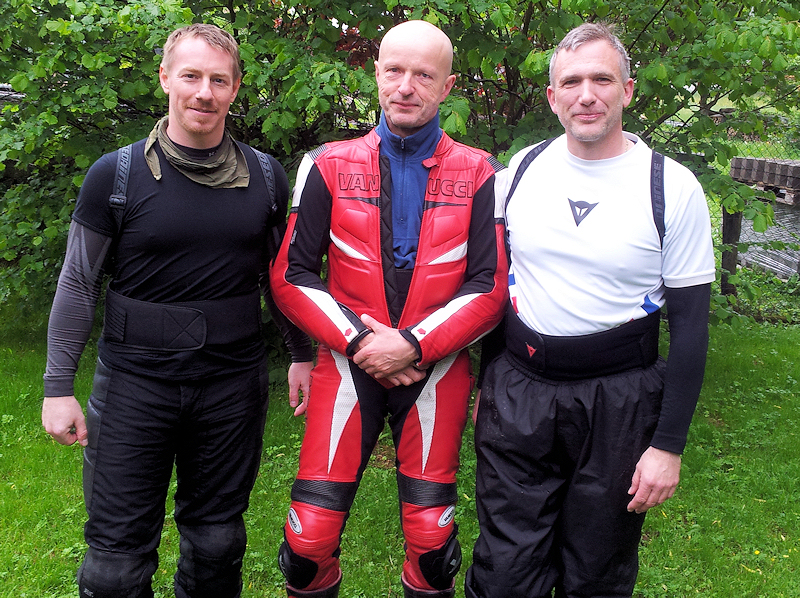 Jens, Helmut und Armin waren das Organisationsteam dieser Tour. Nun, die Tour war klasse aber das Wetter himngegen war durchaus verbesserungswürdig! Wir haben auf der Tour beschlossen, dass wir die Tour nächstes Jahr wiederholen werden, es wäre viel zu schade um die Mühe bei der Vorbereitung. Und die Jungens hatten sich wirklich schwer ins Zeug gelegt! Danke, Danke für eueren Einsatz und das nächste Mal müßt Ihr nicht in der Nacht zuvor die Tour im Regen mit dem Auto testen ... !!!