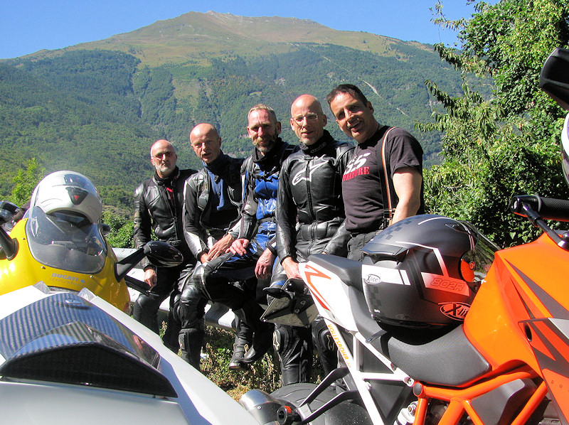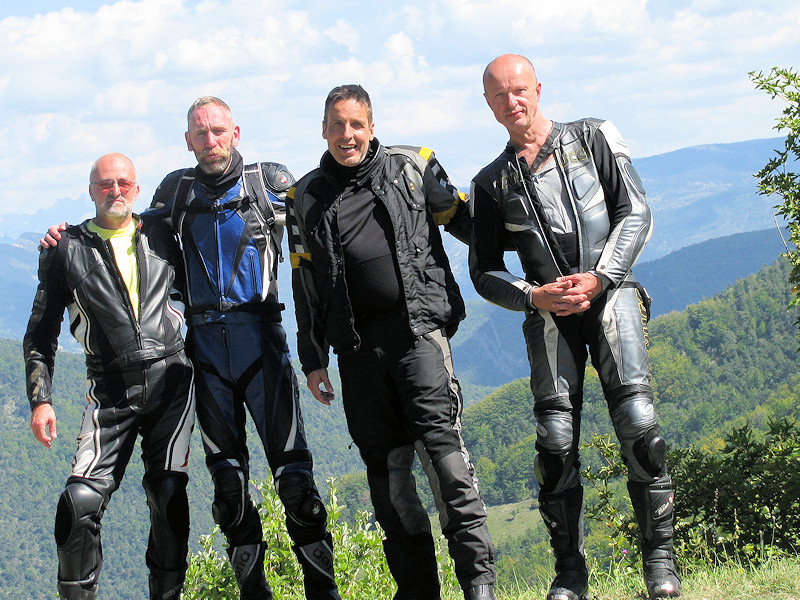 | Die mittlere Gruppe mit Olaf, Andi, Lutz und Jens. Der höchste Punkt des Urlaubs war erreicht. Von da an ging es nur noch bergab ;-, , |