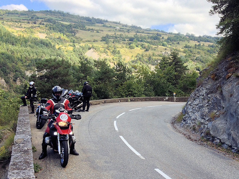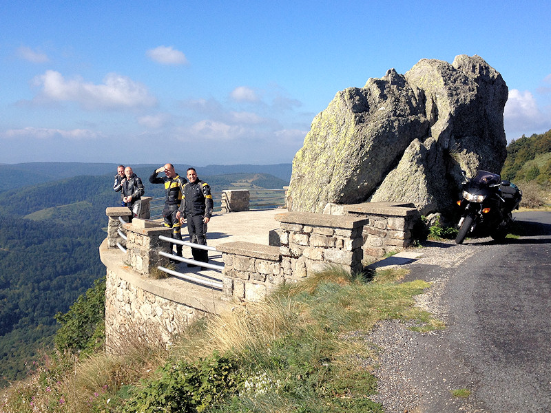 | Tour 8 führte uns entlang des Gebirgszugs „Le Tanargue“ zum Col de Meyrand v.l.n.r.: Andreas, Manni, Helmut, Hagen, . |